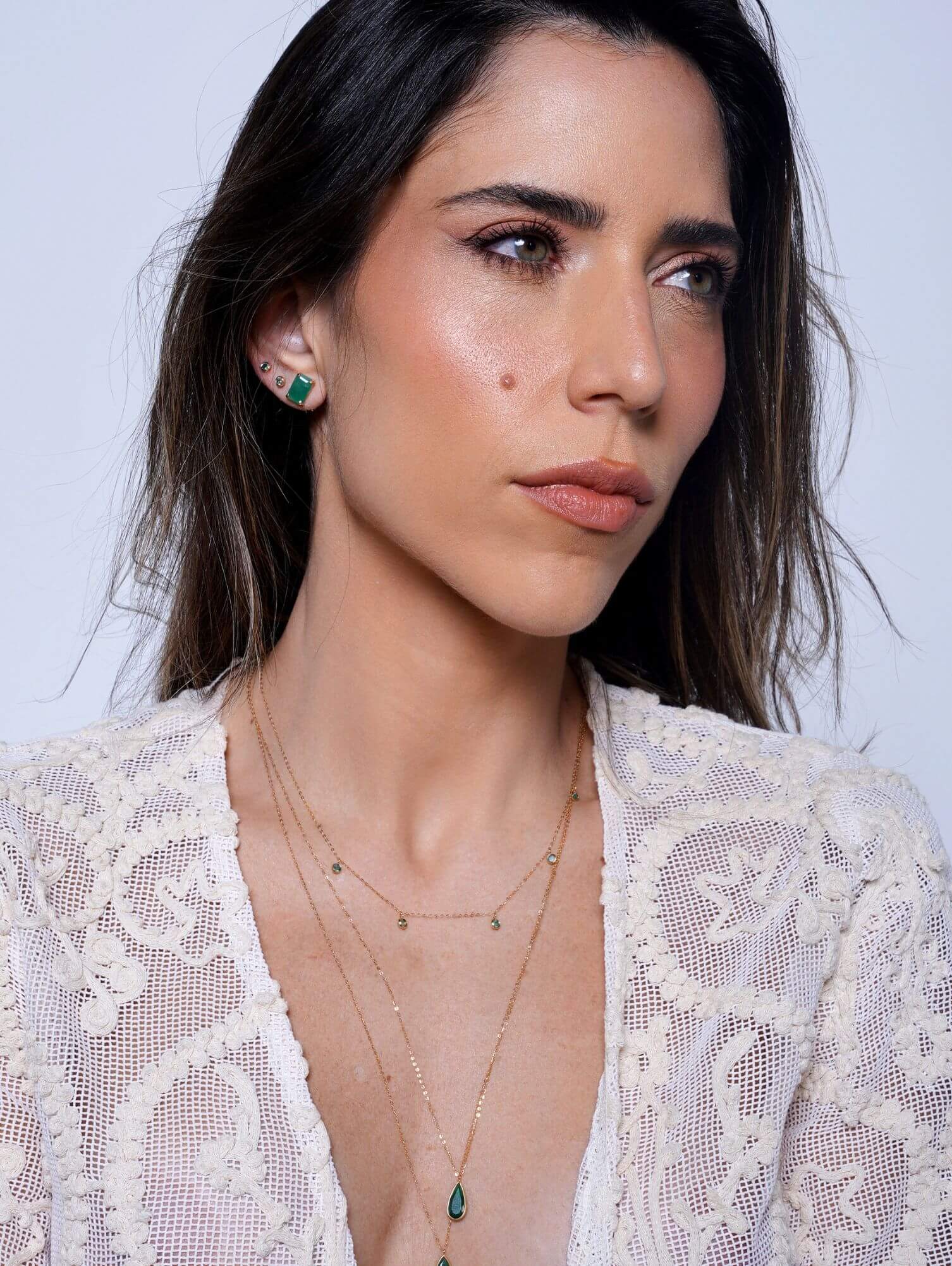Combine com outras peças da nossa -> Linha Esmeralda em ouro 18k para um conjunto completo.