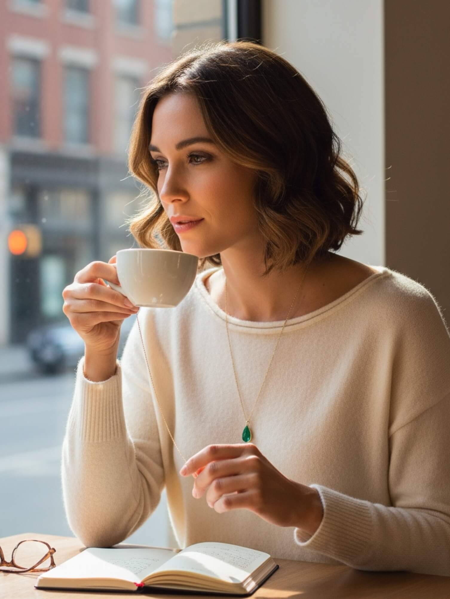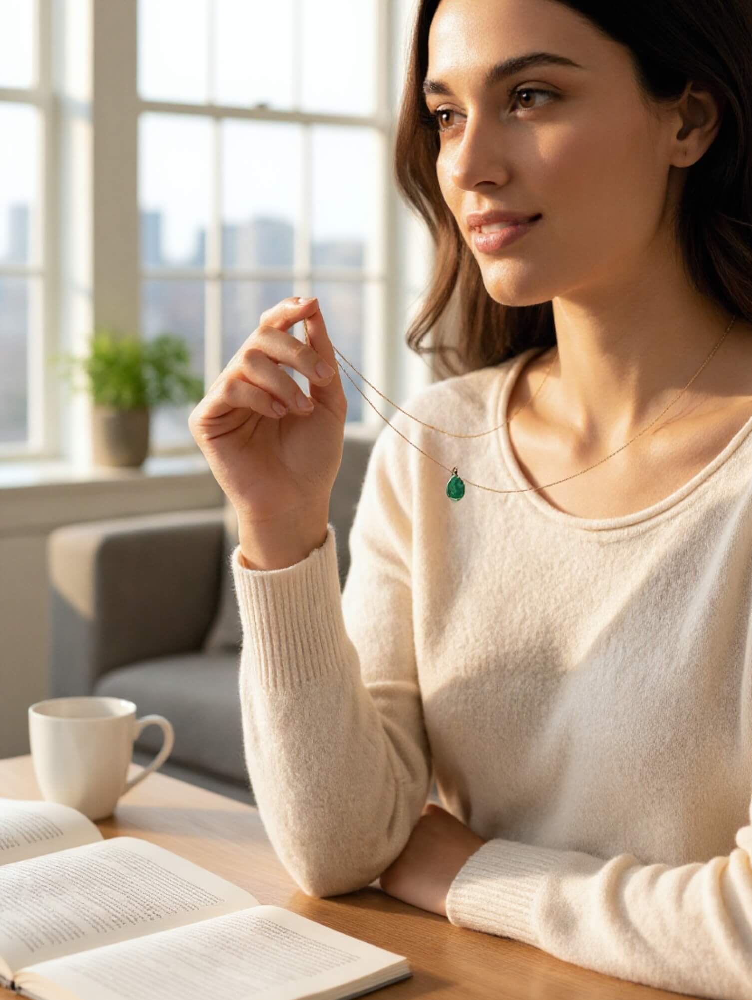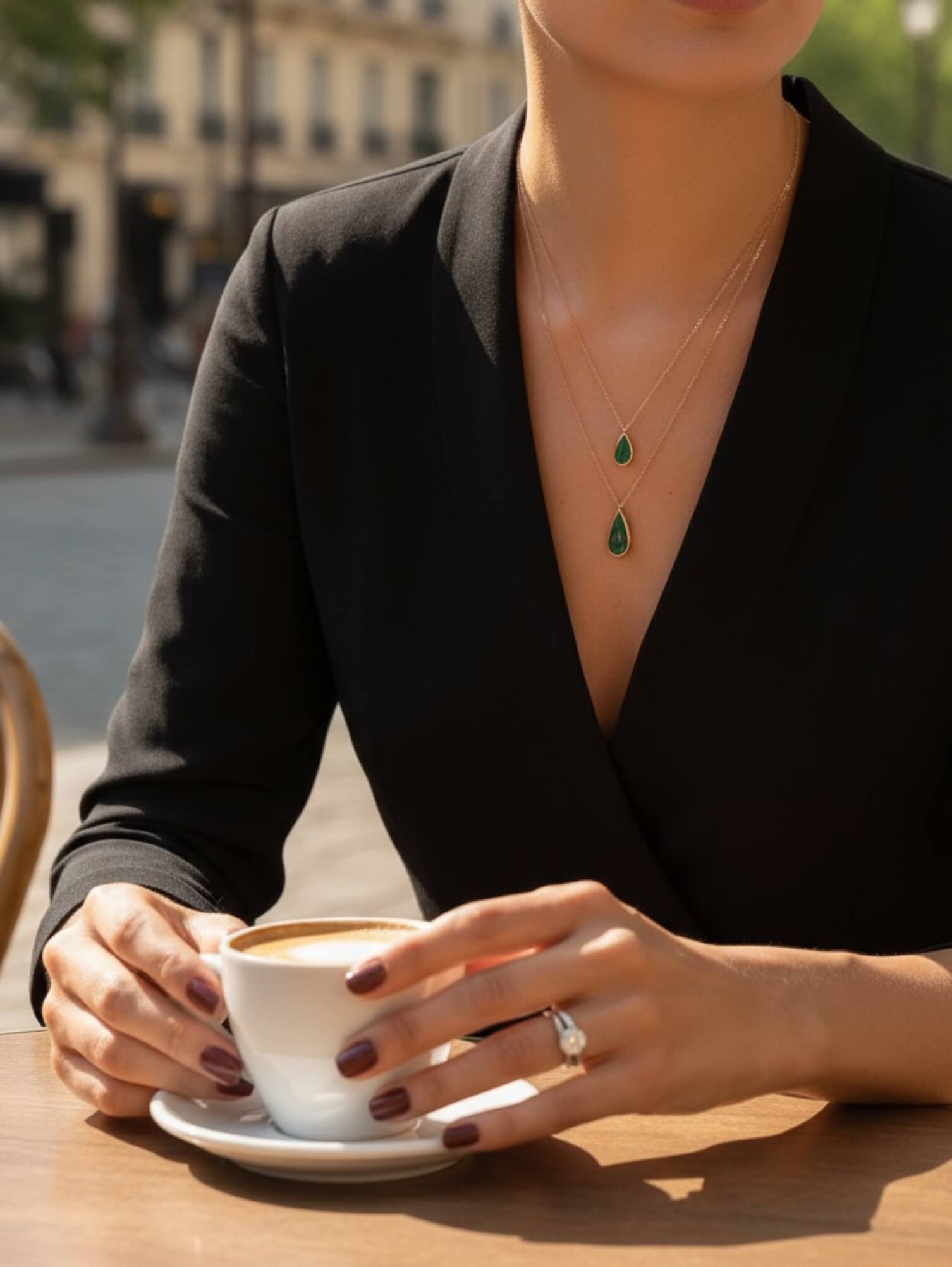 Colar Comprido Esmeralda Gota