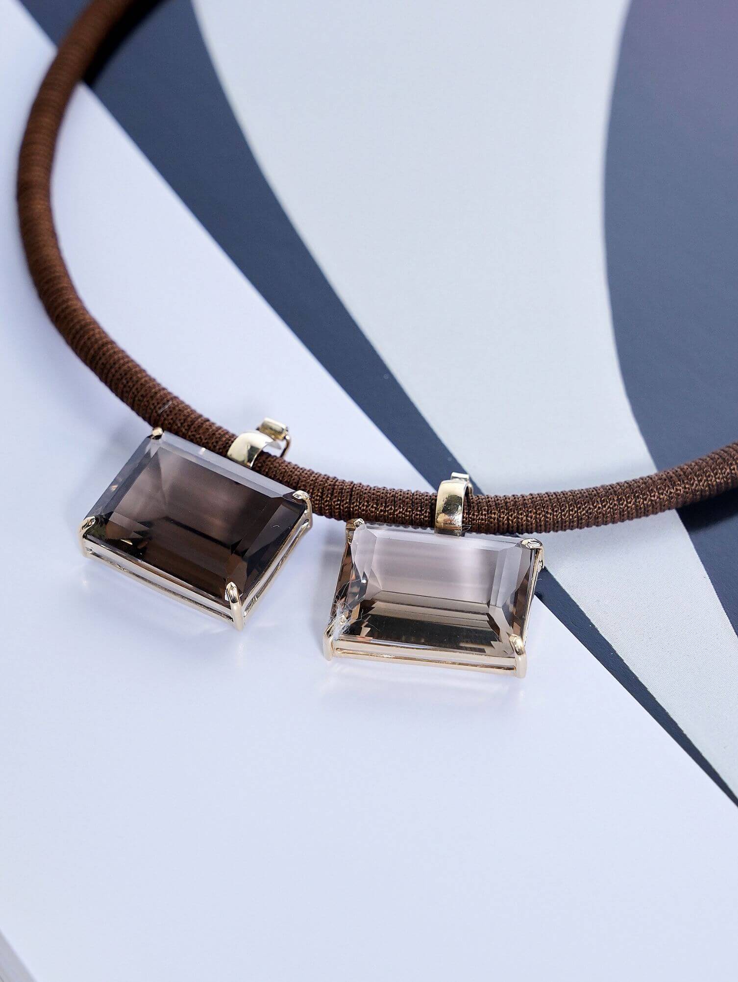 O Pingente Quartzo Fumê em ouro18k possui presença marcante. O quartzo fumê, conhecido por transmitir estabilidade emocional, destaca-se pela cor intensa e pela transparência sofisticada. O ouro18k envolve a pedra e realça cada detalhe, criando um brilho elegante e atemporal.