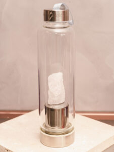 GARRAFA DE VIDRO PARA INFUSÃO BOAS VIBRAÇÕES – QUARTZO ROSA